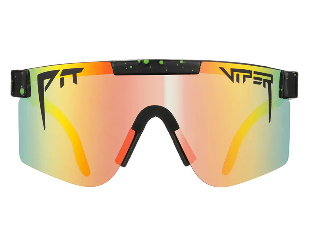 Introducing the Double Wides. With 12mm more room for your big honkin' face. Adjustable, military designed sunglasses with a 90's flair. Strong enough to be shot at, sat on, shoved in pockets, run over and still maintain their sun and wind bucking ability. Breakthrough E-Spot™ and Turbo Adjustment™ technology guarantee a perfect fit. Demand respect and authority in The Original, the Pit Vipers that started it all.